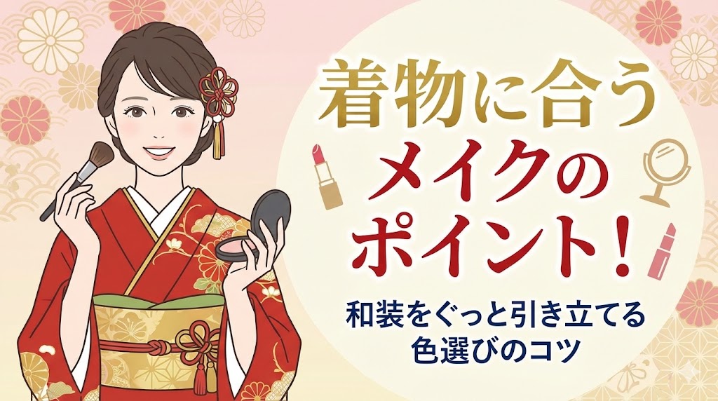 着物とメイクがバラバラにならず、ひとつの物語のように調和させるには、いくつかの色のルールがあります。この3つのコツを意識するだけで、色選びの迷いが消え、自分らしいコーディネートが完成します。色と色が共鳴し合う心地よさを、ぜひ鏡の前で体感してみてください。